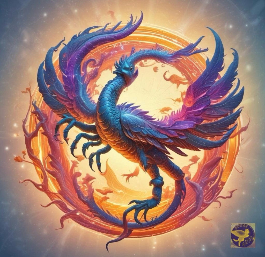 I was introduced to the Hearth book a couple months ago filled with many wisdom gems and resonated with this particular metaphor of metamorphosis of the scorpion representing the lower root chakra drives. Here, in desiring to manifest it’s higher form, the scorpion consumes its own tail to regenerate to its crown chakra form as a phoenix. This may sound gruesome though is a noble and holy spiritual act upholding and sustaining life codes through non-vampiric self-regenesis. So when I am in the throes of creating art, healing, prayer, yoga or play, amidst the quantum God field, I feel time is truly lost as lower drives are consumed and sublimated towards materializing outcomes that express with more spiritual beauty and intensity. : )