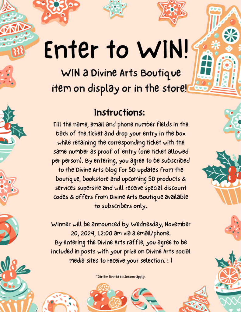 Divine Arts Small Business Event Display: I tried to represent every category with a few representative items from the Divine Arts Boutique. The display felt more like a 5D light code museum, however as the print provider drastically increased rates passing the costs to small entrepreneurers. Thus, I made the exhibit about expanding the understanding of 5D concepts using the items from the boutique as visual aids.Divine Arts Bookstore Starseed Library: I created this as the final hail Mary pass burning the midnight incense before event day. You can have a free starseed book sent to your email from the 25 book spiritual library planned if you subscribe to the Divine Arts blog btw. Two have been released so far. The next book will be launching in a week and promises quantum magic tingles! : )