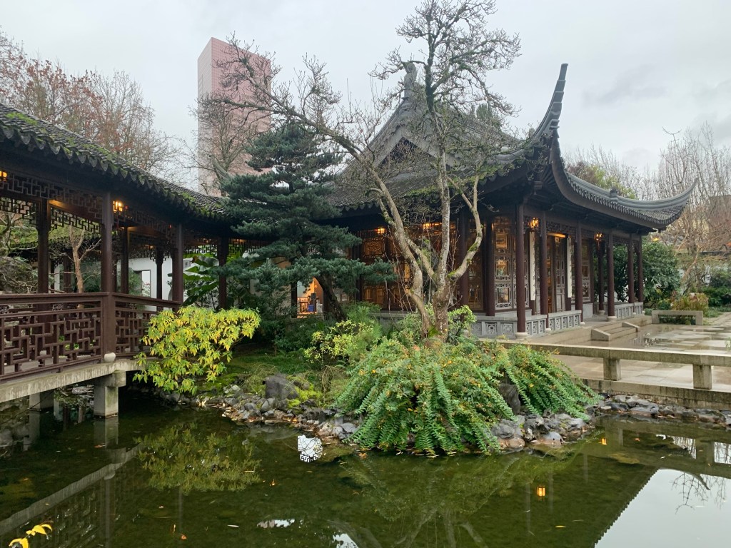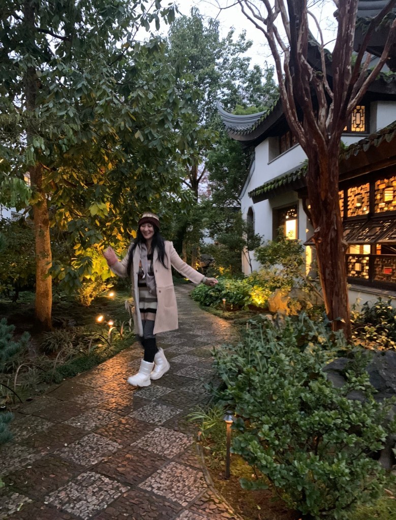 Lan Tzu Chinese Garden, Portland, OR: Doing a celebratory shuffle down a scenic path at the Chinese garden. All materials except the plants and vegetation including the roofing and even impressively carved sculpture stones were brought from China. It feels other-wordly here as if being transported to a different dimension with incredible authentic Chinese style dynastic architecture to enjoy here. A truly magical experience and must see and experience in Portland! The relocation of Divine Arts lightworker station to Portland has brought wonderful experiences so far. ; )