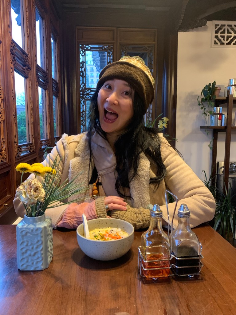 Lan Tzu Chinese Garden, Portland, OR: There is a two storey tea house where teas, hot tasty congee and lotus mooncake desserts can be had upstairs with delicious condiments. The perfect winter pit stop that reminds me of the confort food shared growing up. : )