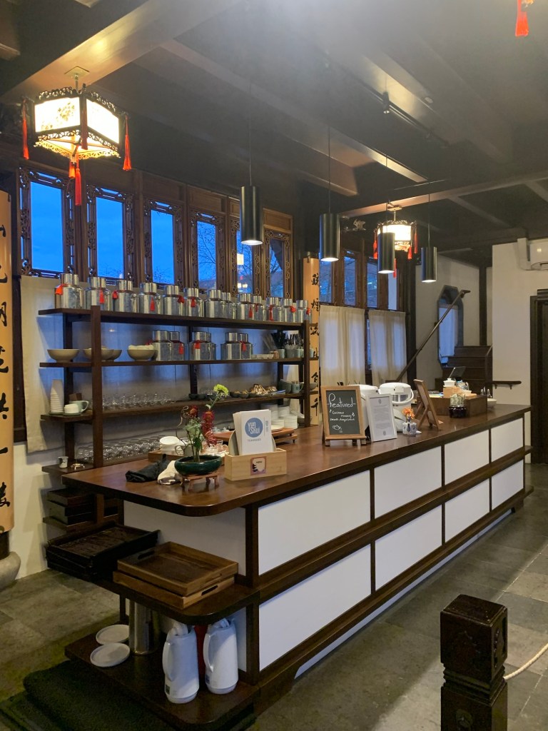Lan Tzu Chinese Garden, Portland, OR: Tea house snack station with a variety of teas, congee & mooncakes