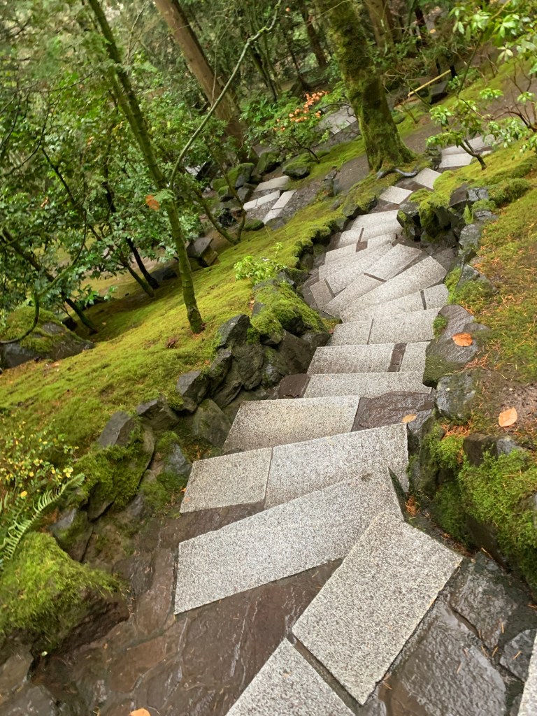 Japanese garden, Portland, OR: The path of transmuting residual karma is like untangling the energetic inner connundrums that causes one to remain stuck… yet doing so will feel like an utter relief with the release of each karmic knot undone as the path becomes clearer and easier and also more downhill! as one inches toward greater ease and freedom in the way home to Source. : )