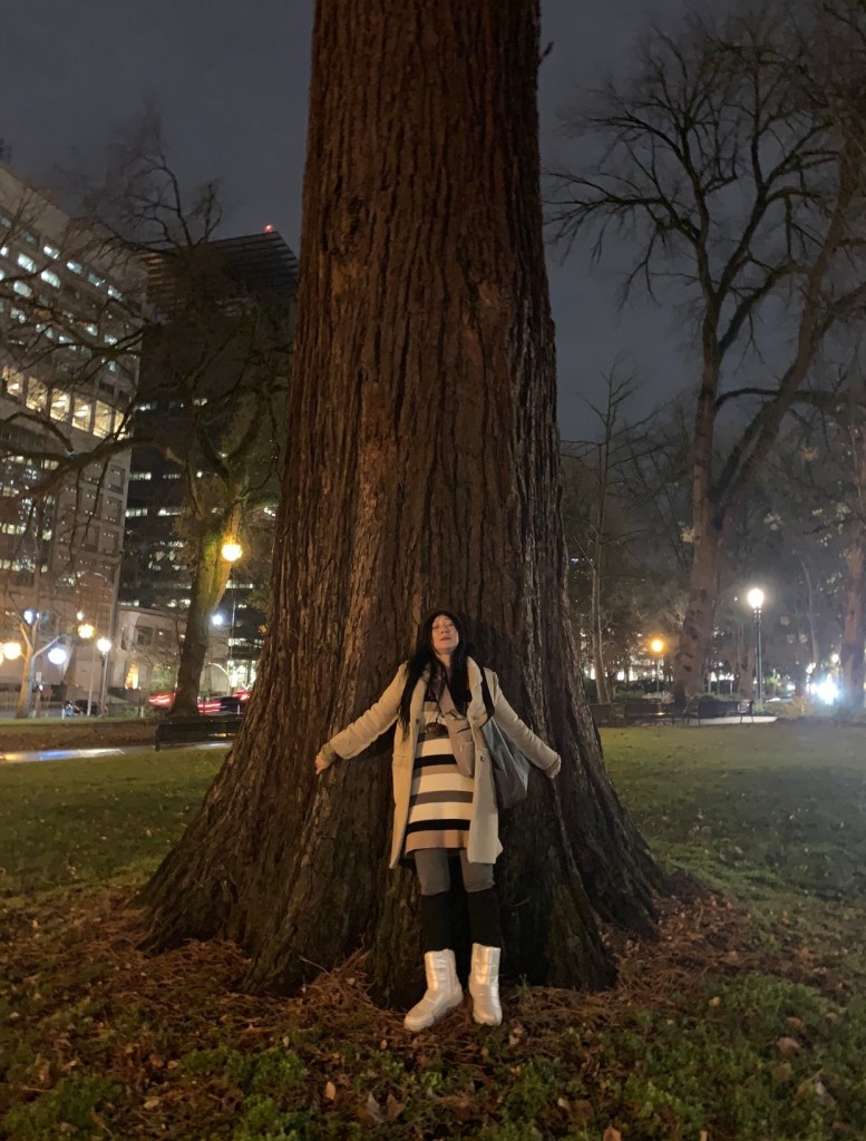 Portland, OR: This was the tree with the thickest trunk I could find that I sometimes read by at a neighborhood park. I am reaquanting with it as missed it a lot from being bunked in for the winter