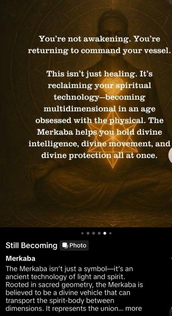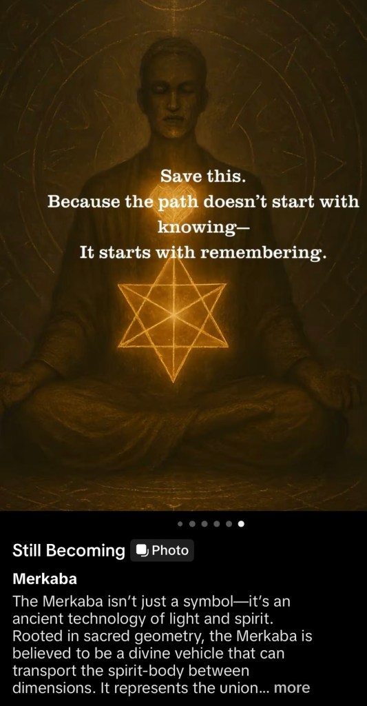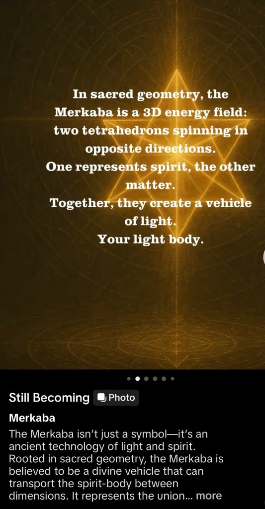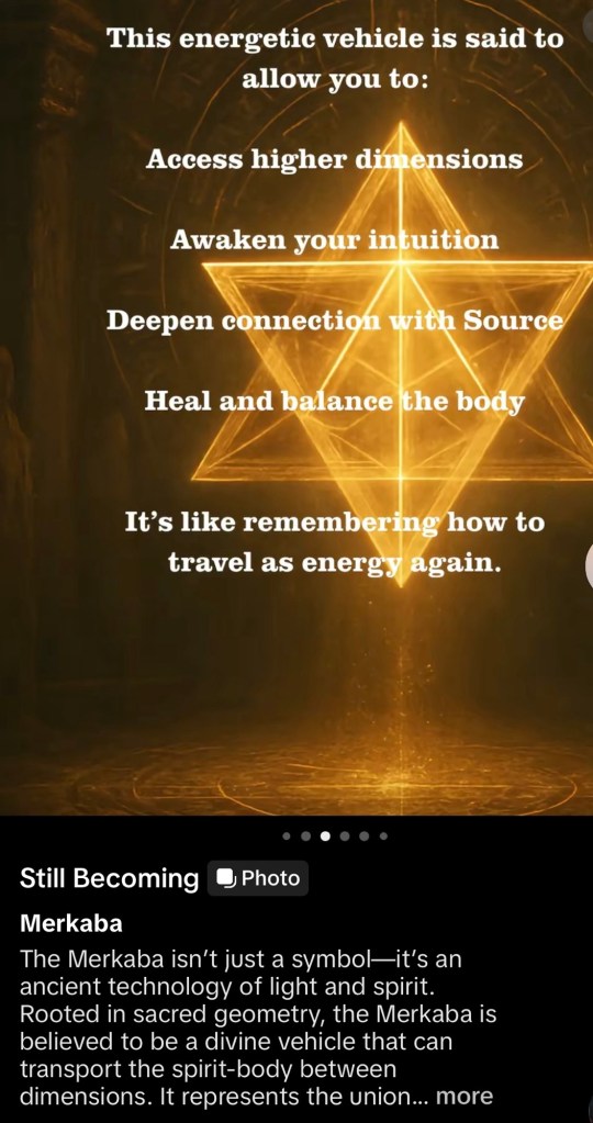 You can follow this profile, @Still Becoming for more knowledge about your eternal light body or merkaba, the true divine organic technology that is infinitely regenerative and immortally based on tri-wave quantum KRYSTALLAH patterned GOD codes!