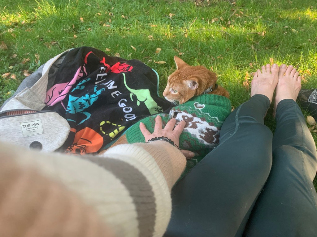 Froopy has been my best furry friend since our first individuation from Source through lifetimes across this universe! In a recent frequency field reading (they read the resonance* of your energetic signature by sampling it from your core frequency that reveals your highest most whole timeline thus consciousness state). I was told we were silent sentinels that embodied and maintained vast memory fields beyond dimension and time in Lyra before any intergalactic war or fracture in humanity’s consciousness particularly from the first intergalactic Lyran Orion wars. Haha, sure lends new meaning to friends forever! Immortally so my beautiful eternal friend. : ) You can read the poem I dedicated to the fall and return of Lyra as humanity’s return to its highest timeline through remembrance here: Poetry in Motion #6: “The Fall“Furry friends of a feather. As they say coming across a feather is like receiving a positive telegram from God/angels/universe… I gleefully happened upon this very long one while scouting for a nice patch of grass to sit Froopy and me down on for a light codes activation tête-à-tête facilitation with my tree buds and nature (a process using ancient angelic and creator race light languages to unlock dormant 🧬). You can also easily learn or have this done for you by a lightworker/starseed fluent in light language). Something I am learning now too! 🪄✨These wonderful people from Mexico and Puerto Rico approached me at the Farmer’s market during a spontaneous outing I brought Froops to for funsies on a misson for fresh apple cider and exchanged delightful personal cat stories with me. The Mexican lady on the far right told me her cats are like silent guardians who neutralize the negativity of spaces and whose presence has brought stability and peace to her home believing they have saved her life on many occasions. 😻 While it was a first meeting, our souls felt connected through lifetimes via our little sentinel feline friends of humanity! 🐈🌻✨Divine Arts Boutique: My 5D love light reminder creations with the Divine Arts Bookstore & Divine Arts 5D supersite in progress. Until shipping costs lower, the DA shop makes a nice gander as a light codes museum to enjoy & blast open the gates of celestial vision at the third 👁️!