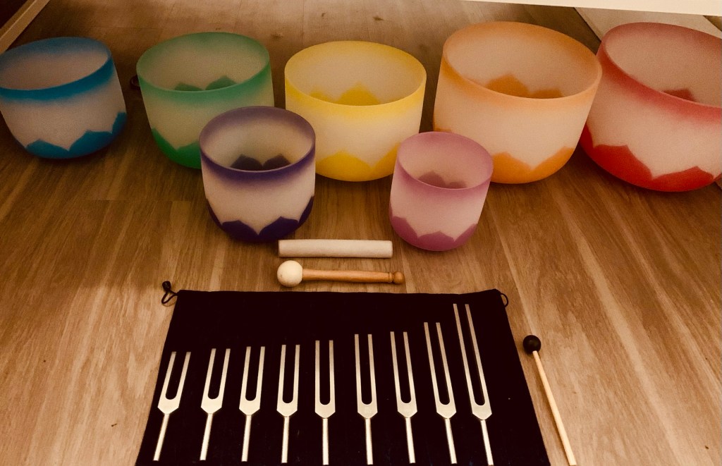 My energy boosting companions. Frequency cleansing with tuning forks and crystal bowls allows me to correct self and surrounds to Krystic Source/God field architecture thru Tesla’s magic manifestion numbers 3, 6, 9 which are the proportional step ups of frequency that has created this universe and which also correspond to the human body’s fundamental energy coded chakra map as alignment is adjusted back to organic OPEN GOD SOURCE CODE frequencies that created this universe fromt the Eckasha god realms in the beyond (Eckasha infographic below).