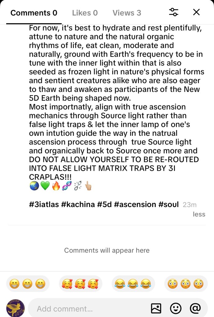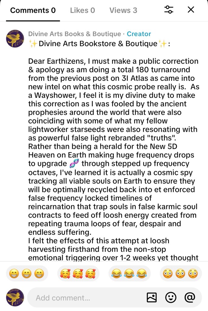 Right now, the first impression I would like to give is a HUGE correction to the 3I Atlas post I just made on TikTok & IG.