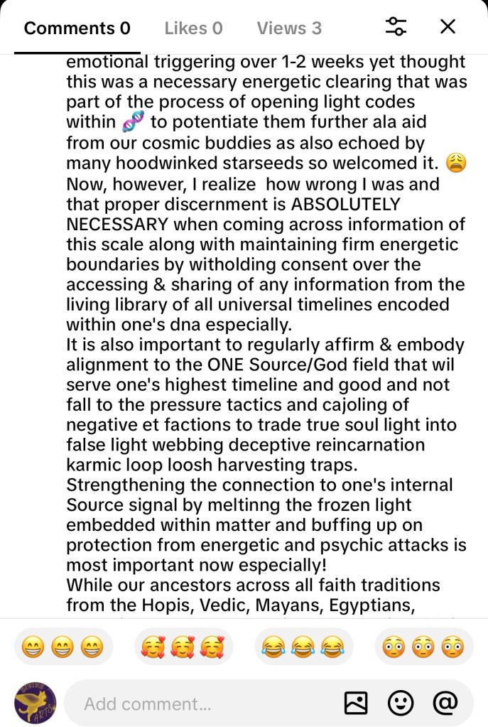 For the thousands who view my blog every week though are non-subscribers, I hope this correction also reaches you and for anyone seeing this particular post, please spread the word of what 3I Craplas really is: an et probe set to spy and track human souls like a soulnet GPS to incarnate them back into negative et faction generated false matrix phantom timelines that systematically farm & feed off humanity’s pain & suffering they refer to as loosh through the creation of false karmic soul contracts as soul net traps (see post below for the real deal)!